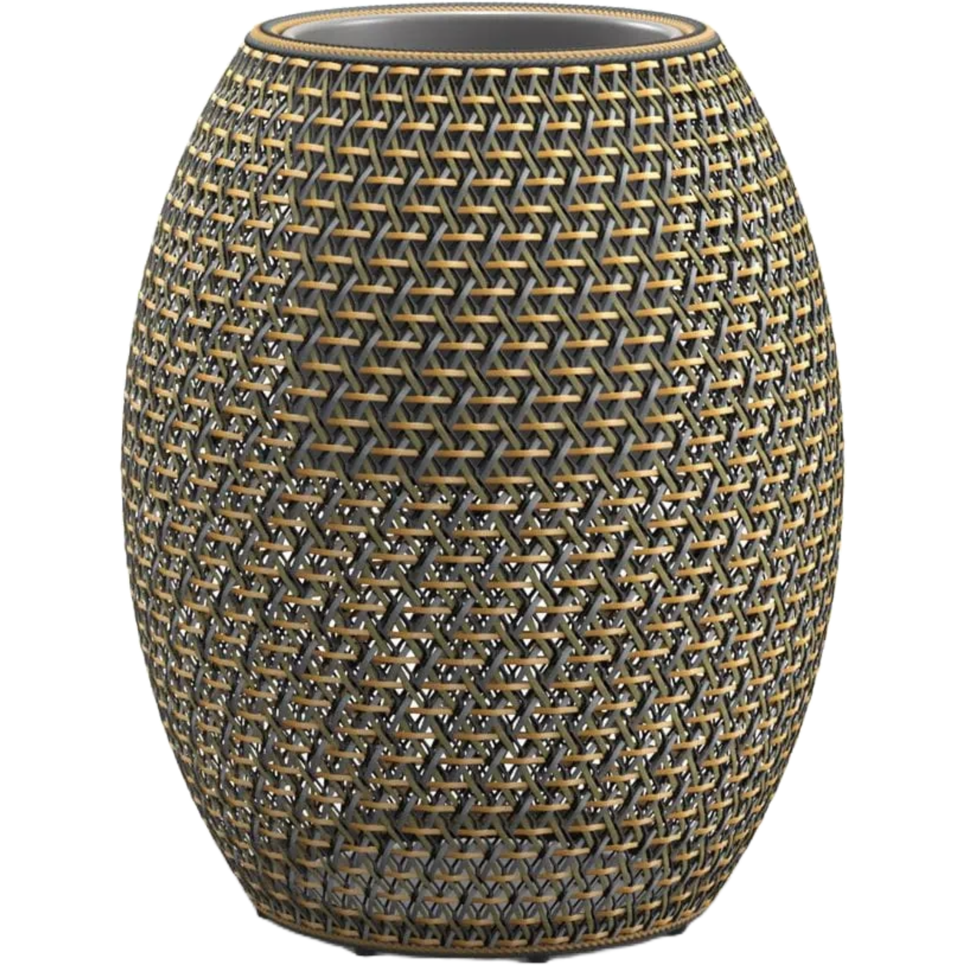 Each piece begins with a powder-coated aluminum mesh frame, hand-woven with DEDON’s eco-friendly fiber, creating a seamless union of structure and surface.