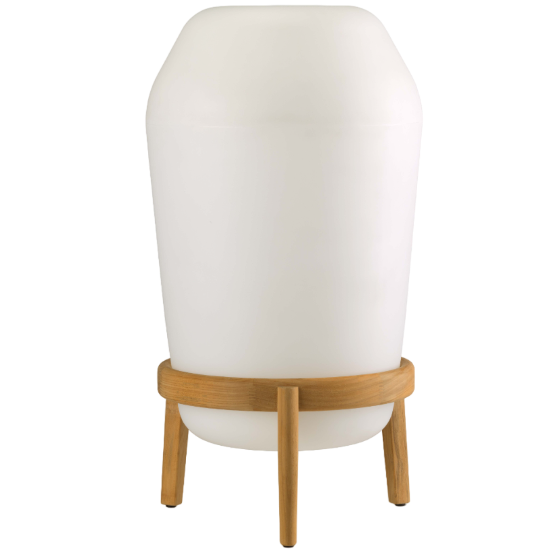 Designed by Sebastian Herkner, the LOON Floor Lamp is a striking fusion of indoor sophistication and outdoor practicality, perfect for luxury yacht decks and terraces. Its balloon-like body of matte white plastic rests on a pedestal of premium teak, casting a warm, ambient glow that transforms any evening into an inviting, atmospheric experience.