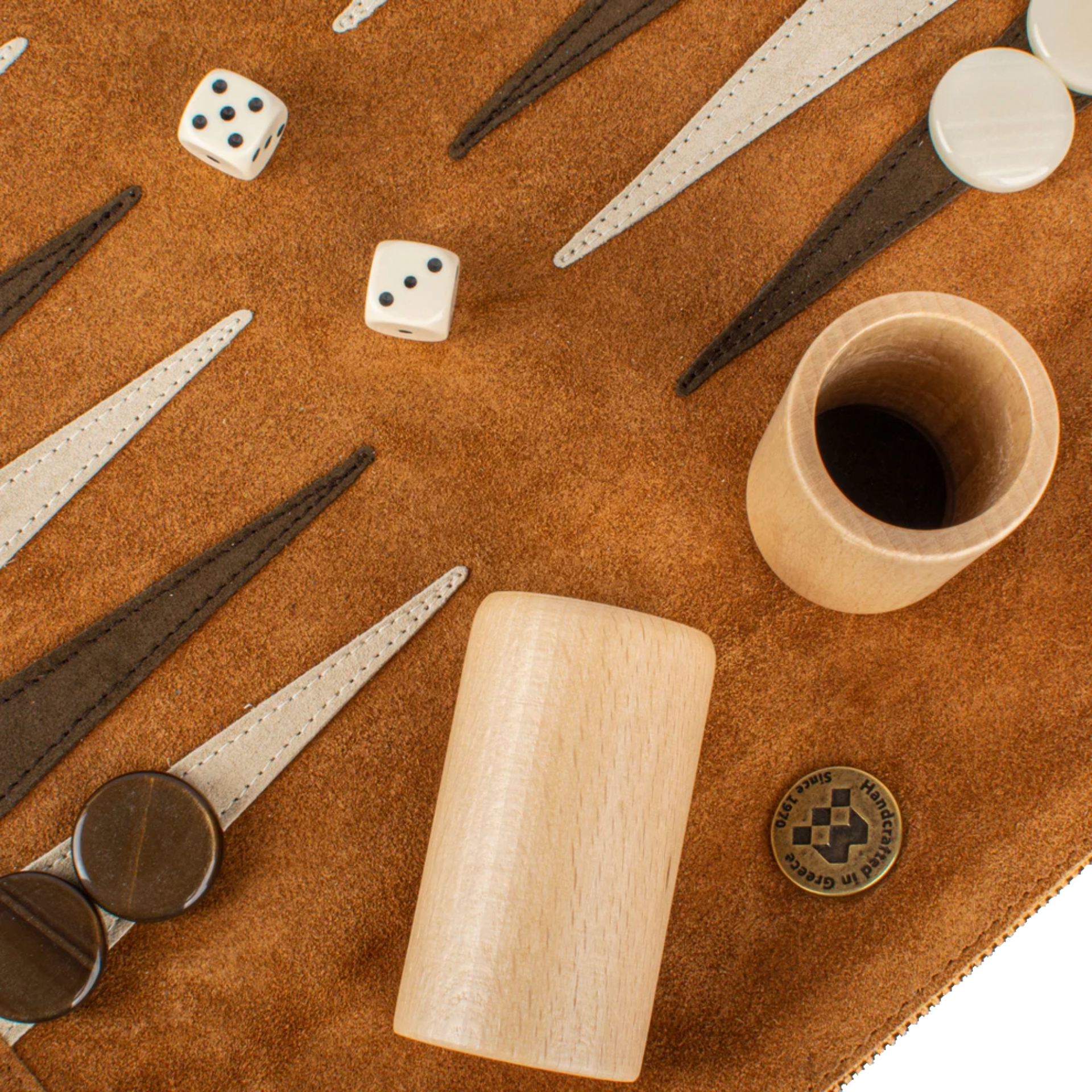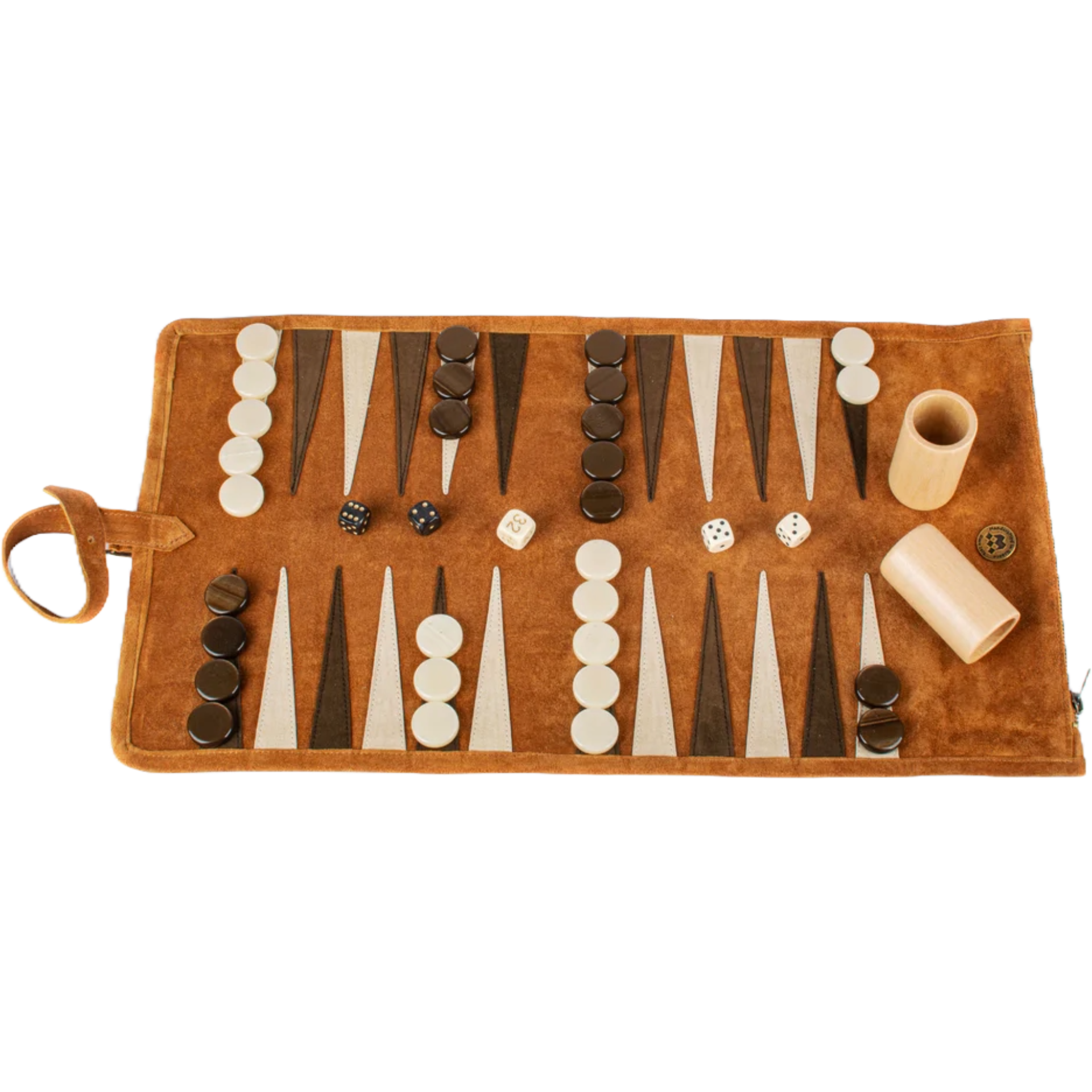 This Premium Handcrafted Cinnamon Brown Suede Roll-Up Backgammon Set combines the best of traditional craftsmanship and contemporary design.