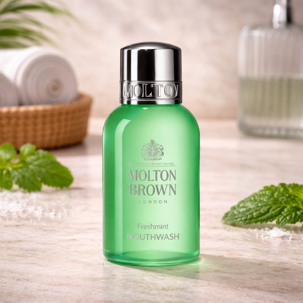 Stay fresh and confident with Molton Brown Freshmint Mouthwash, a refined oral care essential designed to elevate your daily routine. Infused with a crisp mint flavour, it delivers an instant burst of freshness while helping to maintain a clean, revitalised feeling in the mouth. Its sleek, travel-friendly format makes it perfect for on-the-go use or luxury hospitality settings. Clean, refreshing, and effortlessly elevated, it brings a touch of everyday luxury to oral care.