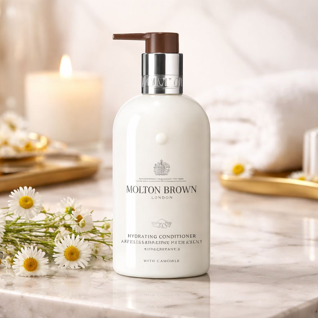 Nourish and hydrate your hair with Molton Brown Hydrating Conditioner with Camomile, a gentle yet effective formula designed to restore moisture balance while keeping hair soft and manageable. Enriched with sustainably sourced camomile, it helps soothe the scalp and smooth strands, leaving hair silky and healthy-looking. Its delicate herbal fragrance adds a calming, spa-like touch to your routine. Lightweight, hydrating, and beautifully fragranced, it’s perfect for everyday haircare with a touch of luxury.