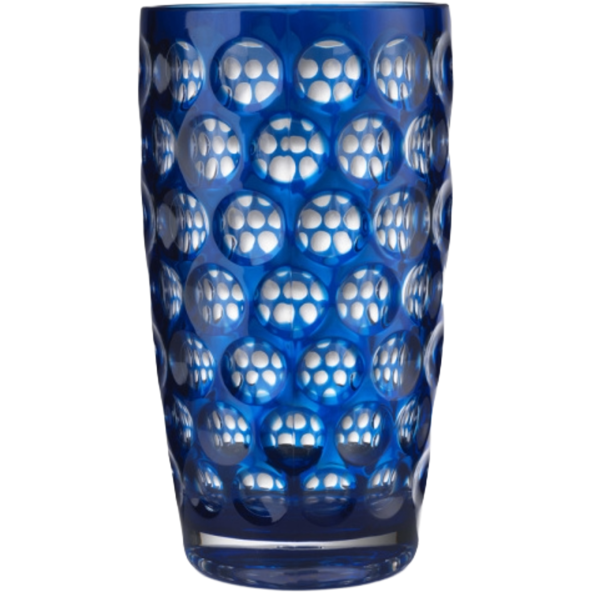 - Tall drinking glass with a distinctive lens‑effect texture