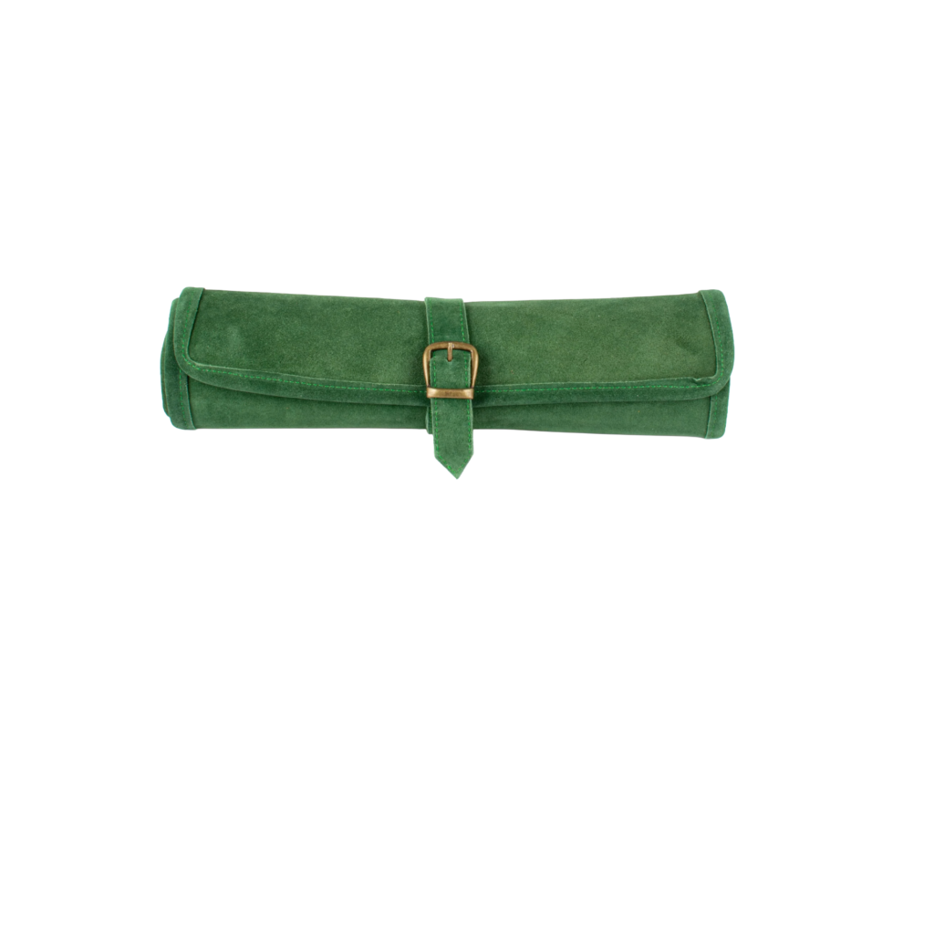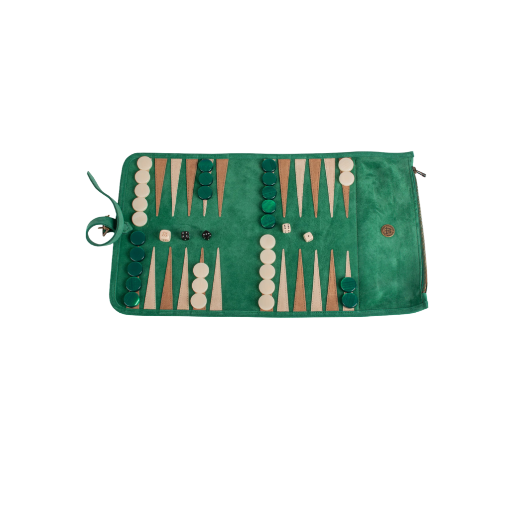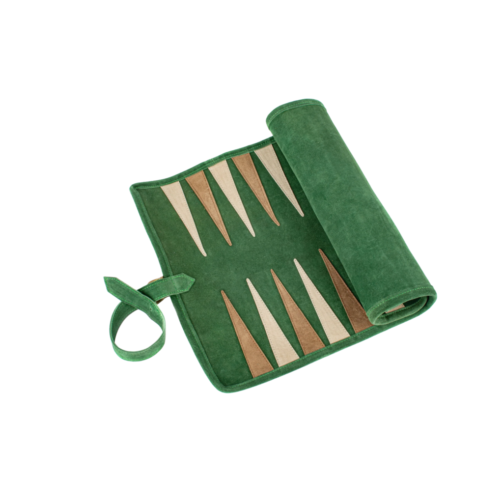 This forest green suede roll‑up backgammon set brings rich colour and tactile luxury to every game, blending classic play with effortless portability. The deep, elegant green suede gives it a refined, nature‑inspired look, while the roll‑up design makes it easy to take from home to holiday without sacrificing style or craftsmanship.