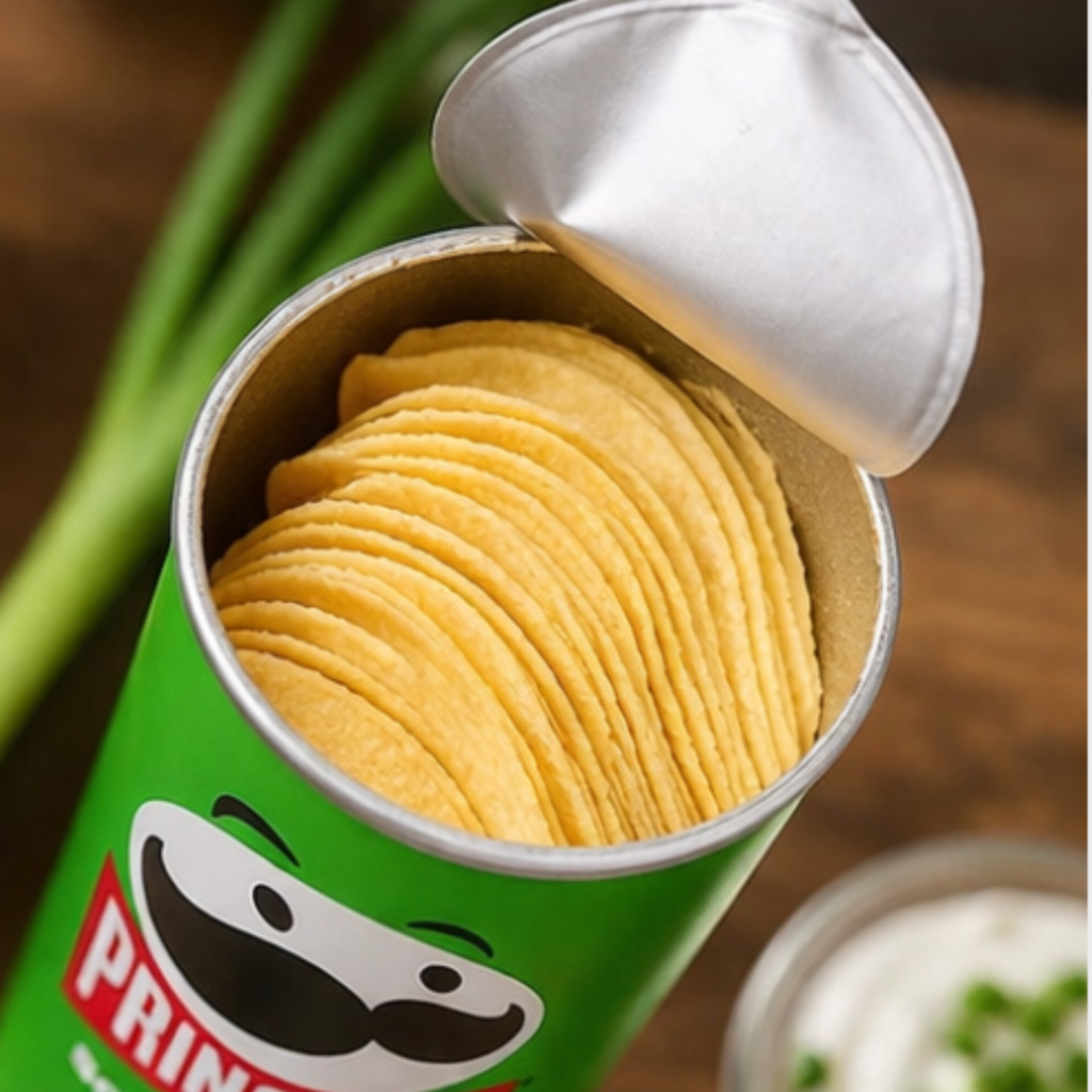- Iconic potato-based snack from Pringles, known for its stackable shape
