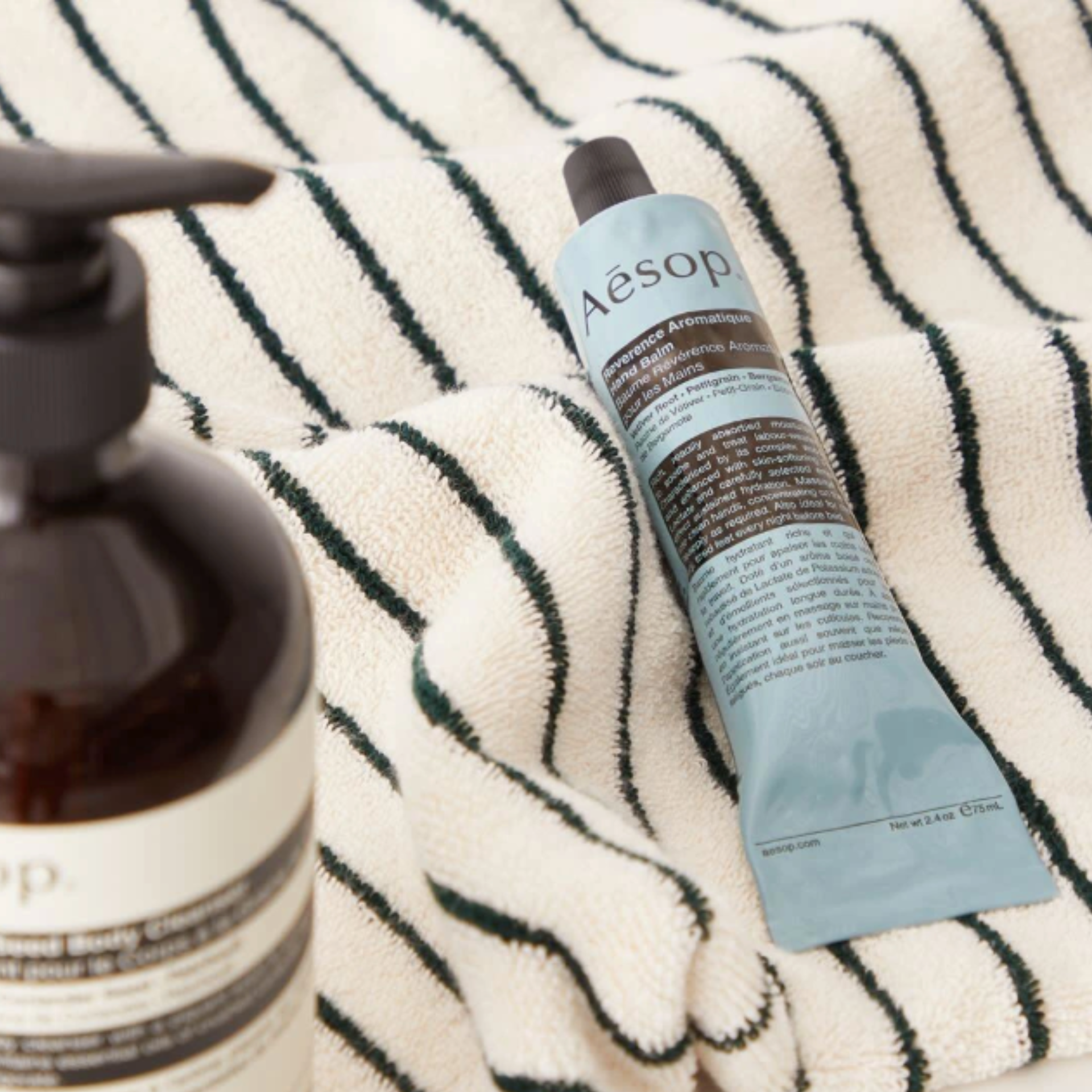 Deeply nourishing and beautifully aromatic, the Reverence Aromatique Hand Balm by Aesop is designed to restore and protect hardworking hands. Its rich yet easily absorbed formula delivers lasting hydration, leaving skin soft, smooth, and comforted.