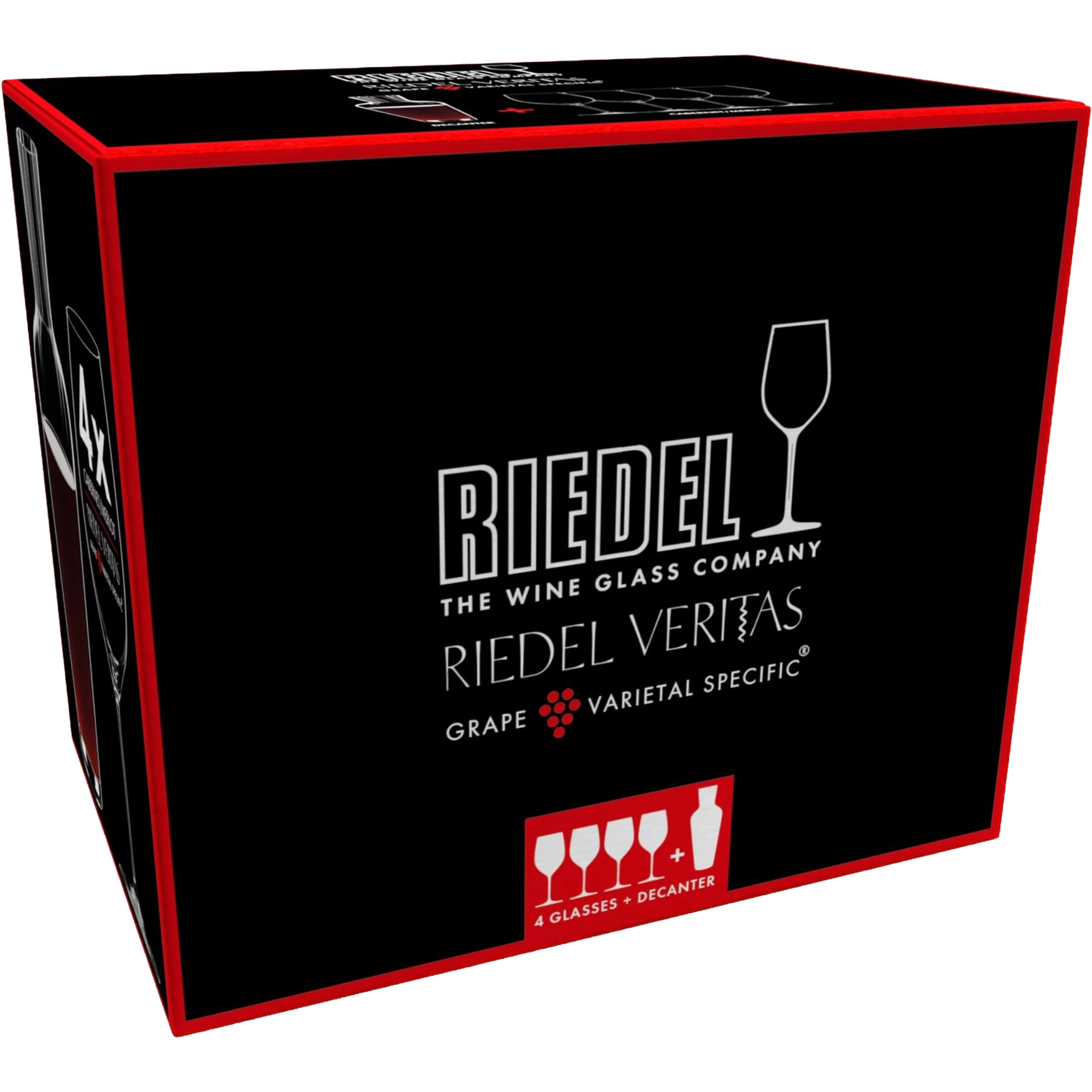 • Includes 4 Veritas Cabernet/Merlot wine glasses and 1 Mosel Decanter