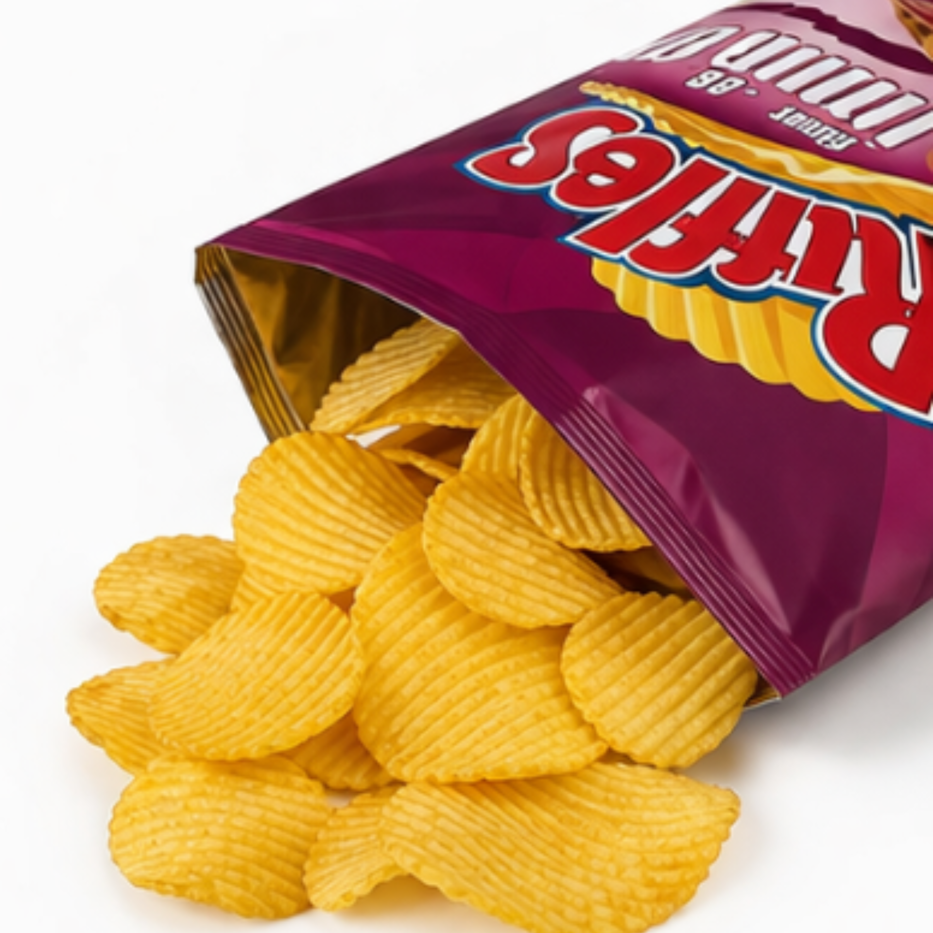 • Iconic ridged potato chips from Ruffles, known for their thick cut and wavy shape