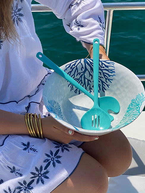 The Salad Bowl With Servers Harmony – Mare, Set 3 Pcs brings fresh nautical style and practical functionality to your tableware collection. Made from high‑quality, unbreakable melamine with a bold coral design in shades of blue, this set adds colour and elegance to your meals while offering durability for everyday use. The included servers make it easy to serve family‑size salads or side dishes at home, on deck, or outdoors. Dishwasher safe and resistant to wear, it’s a stylish and reliable choice for casual dining, boat use, or outdoor gatherings.