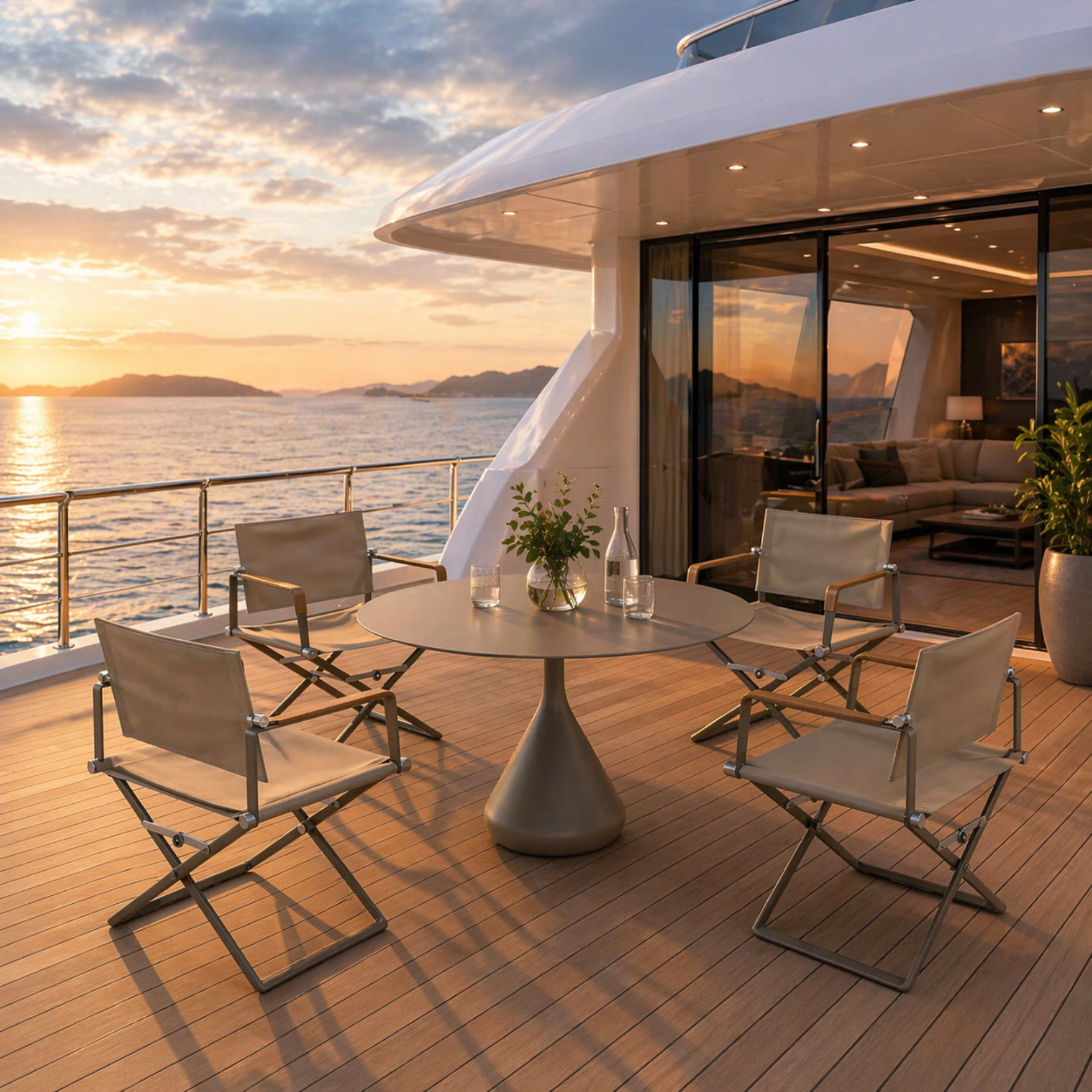 - Yacht decks and luxury lounging areas