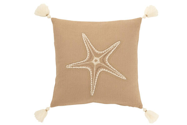 Add a playful yet elegant coastal touch to your space with this starfish cushion featuring soft tassel details. Its natural beige tones and ocean-inspired shape instantly create a relaxed, beachy atmosphere, perfect for both indoor and outdoor styling. The textured design adds depth while keeping a light and airy feel.