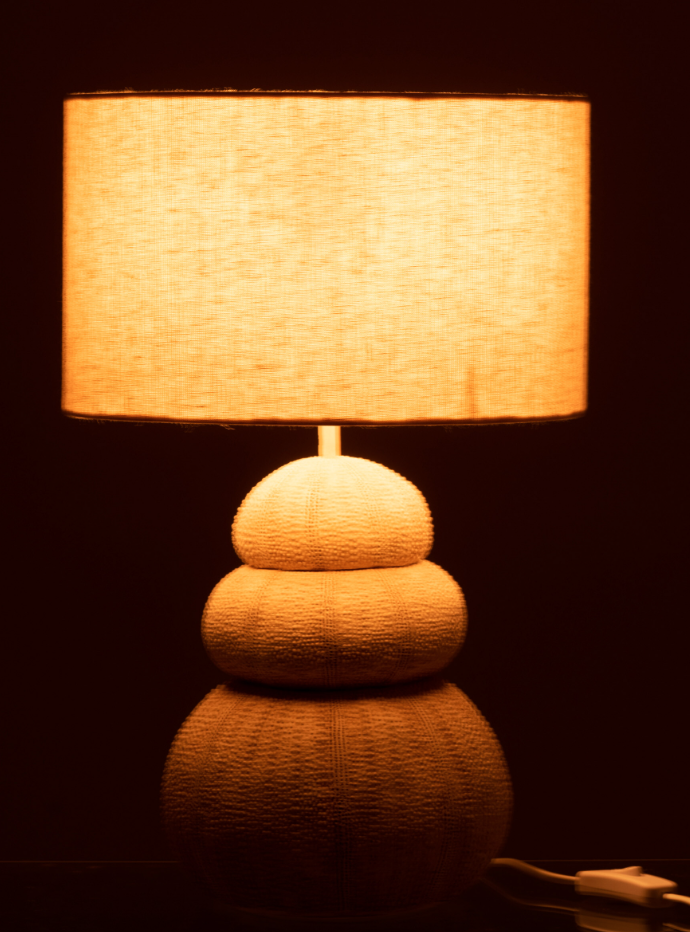 This elegant table lamp features a sea urchin-inspired design in soft beige tones, bringing a natural, coastal feel to any space. Perfect for adding warmth and texture, it works beautifully in both modern and relaxed interiors.