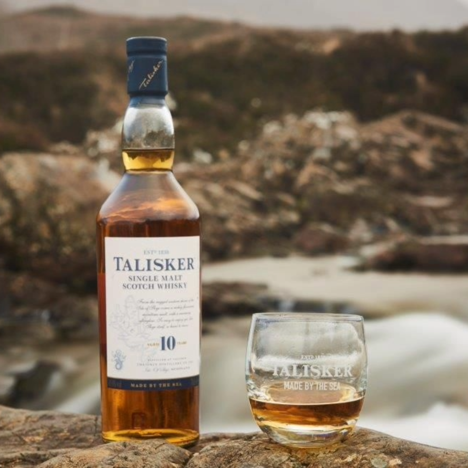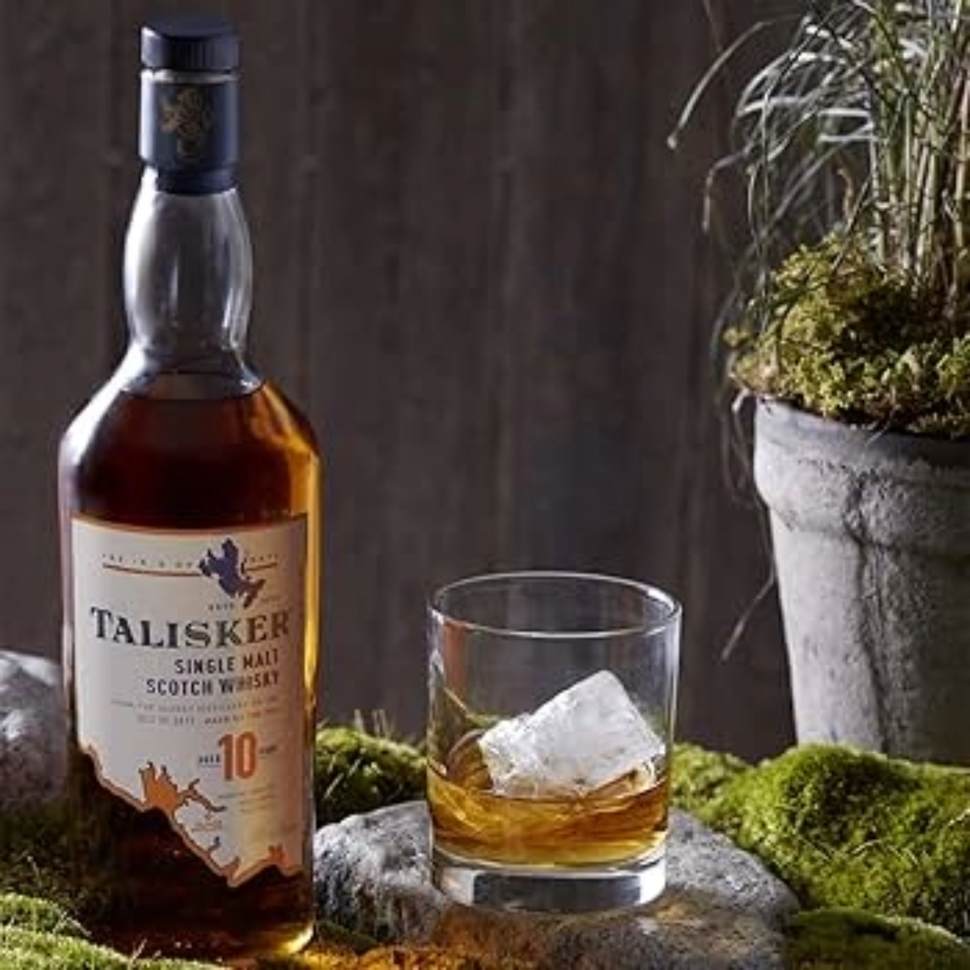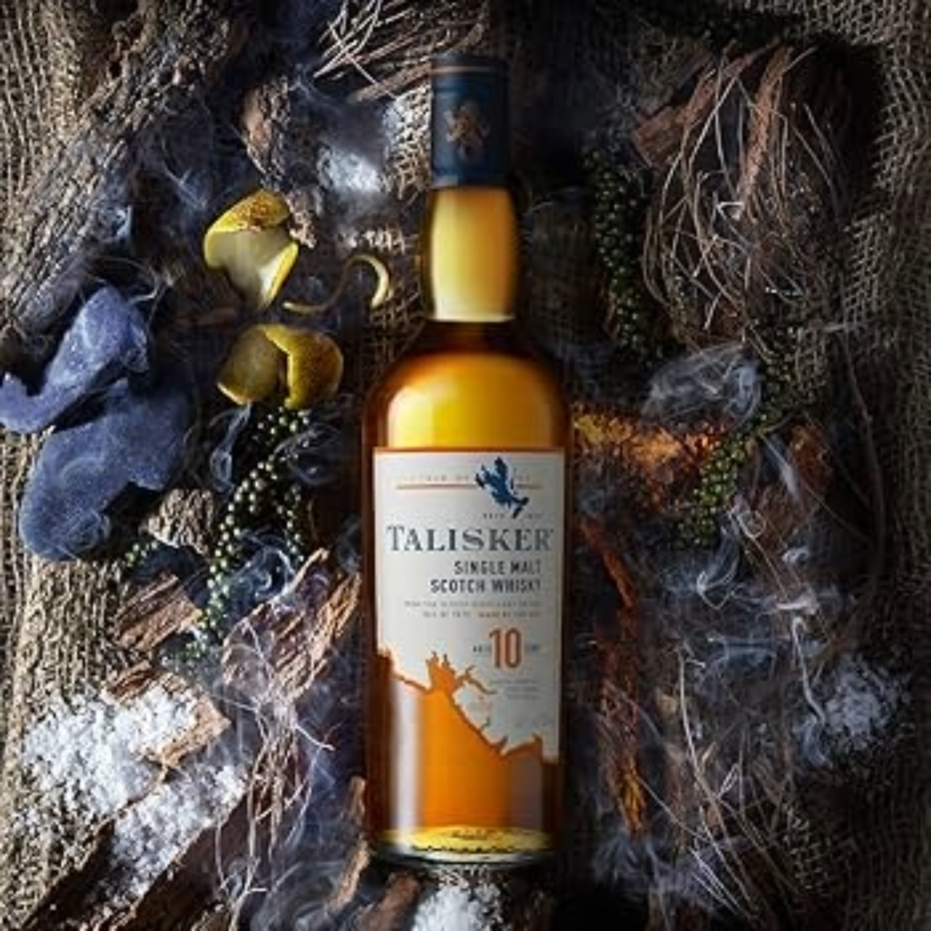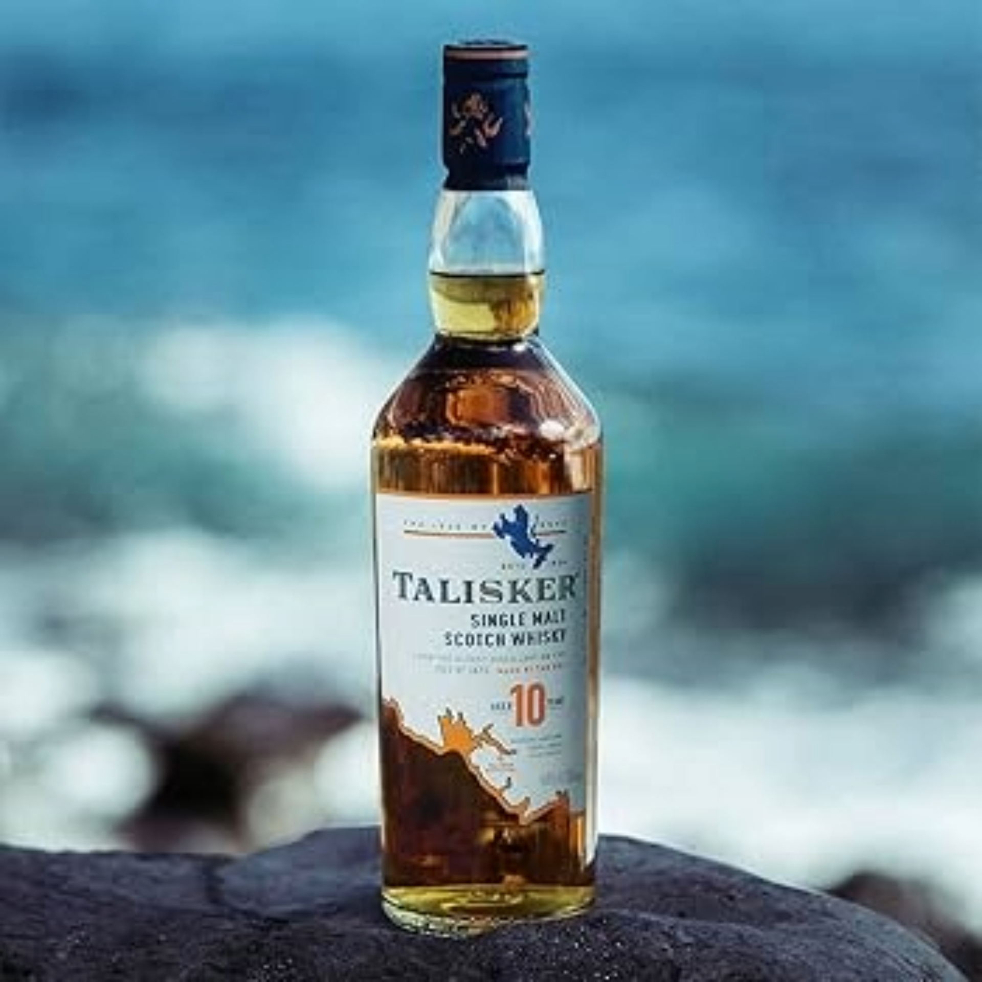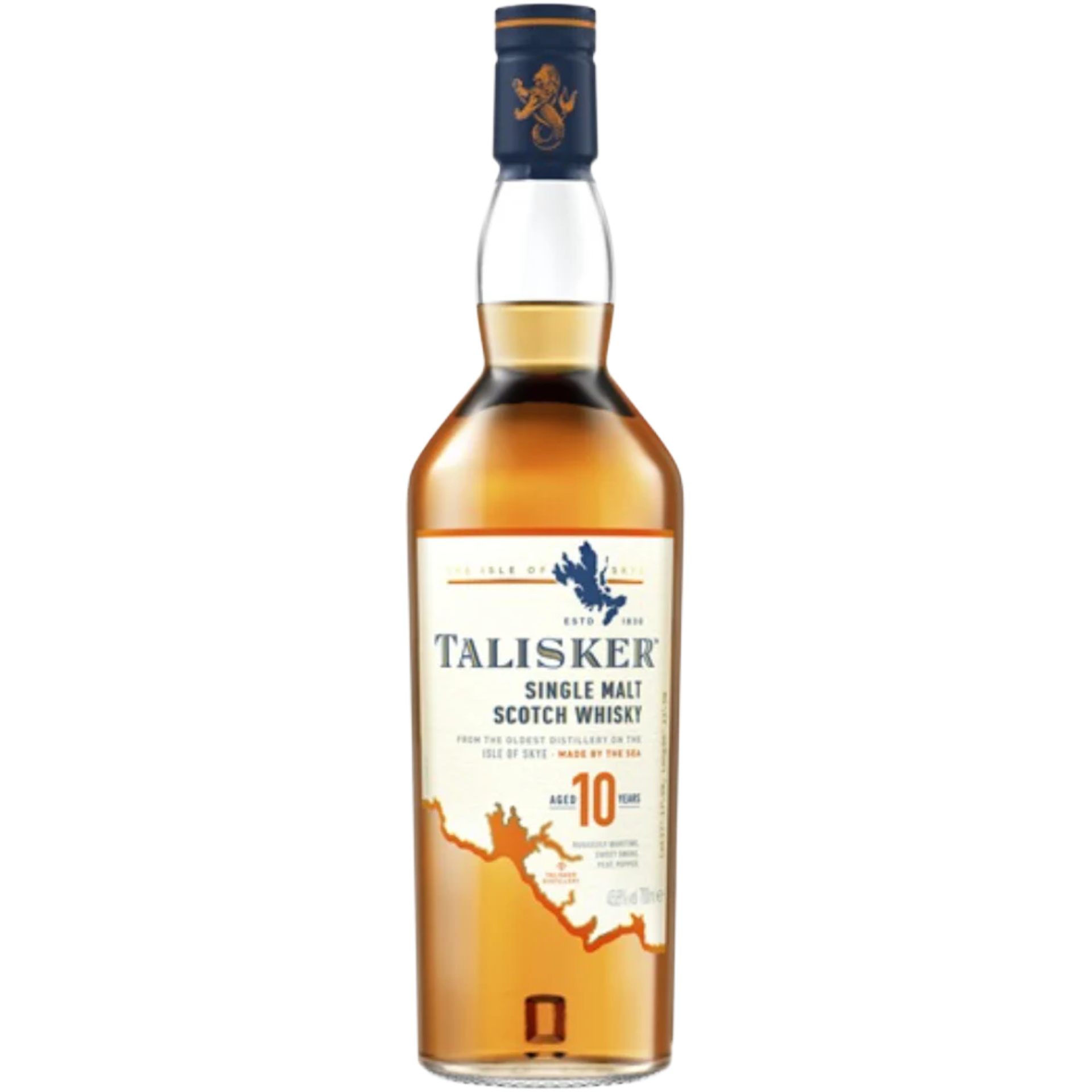 Discover the wild character of the Isle of Skye with Talisker 10 Year Old, a single malt Scotch whisky known for its bold maritime influence. With its signature smoky profile, hints of sea salt, and a peppery finish, it delivers a powerful yet balanced tasting experience. Rich and evocative, it captures the essence of rugged coastal landscapes.
